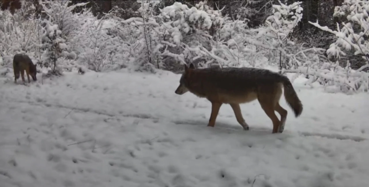 Yiyecek arayan vaşak ile kurtlar fotokapana yansıdı