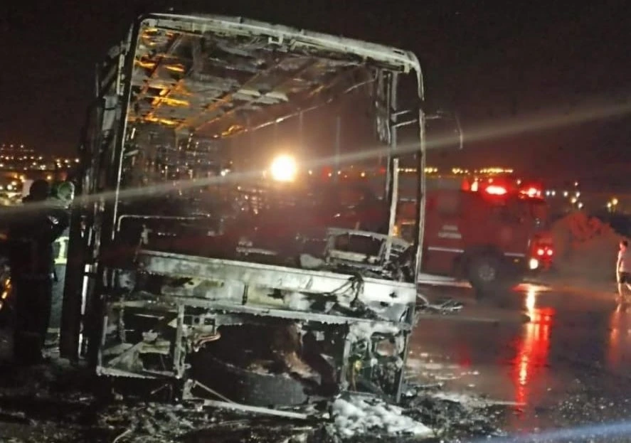 Olay, gece saatlerinde Tarsus-Adana-Gaziantep (TAG) otoyolu Nurdağı kesiminde meydana geldi. İddiaya göre, Nevşehir’den Şanlıurfa’ya doğru seyir halinde olan E.B. (58) kontrolündeki 50 DK 519 plakalı otobüste bilinmeyen bir nedenle yangın çıktı. Yangını fark eden şoför, otobüsü emniyet şeridine çekerek 31 yolcuyu hemen tahliye etti. Yolcuların otobüsten tahliye edilmesinin hemen ardından alevler otobüsü tamamen sardı. İhbar üzerine olay yerine jandarma, sağlık ve itfaiye ekipleri sevk edildi. Yangın, itfaiye ekiplerinin müdahalesi sonucu söndürülürken otobüsten geriye hurda yığını kaldı.
