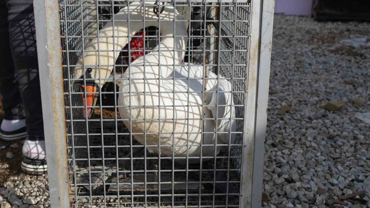 Ankara’nın Elmadağ ilçesinde evin bahçesine düşen kuğu, bir gün boyunca ev sahibinin misafiri oldu.