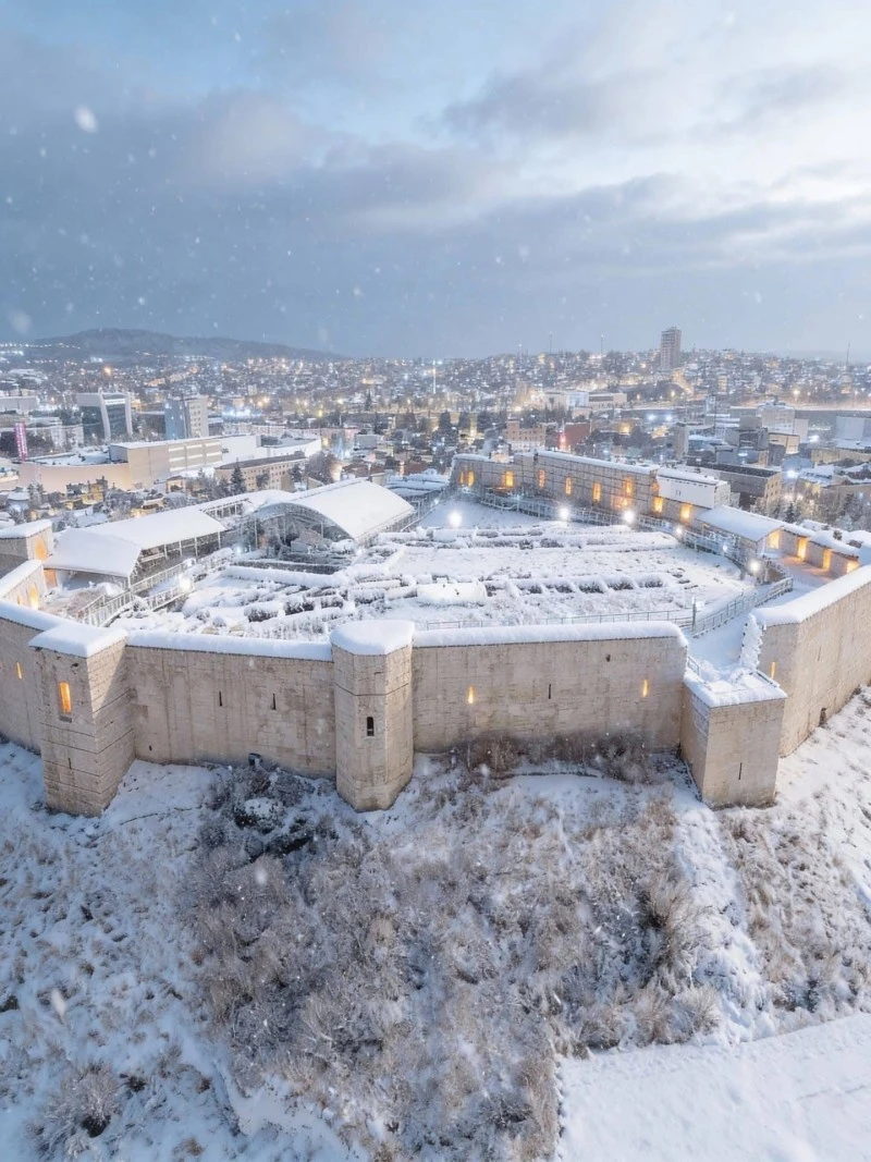 Gaziantep Kalesi’nden Panorama 25 Aralık’a, tramvay hattından eski mahallelere kadar şehir, kışın en saf haliyle kartpostallık manzaralar sundu.