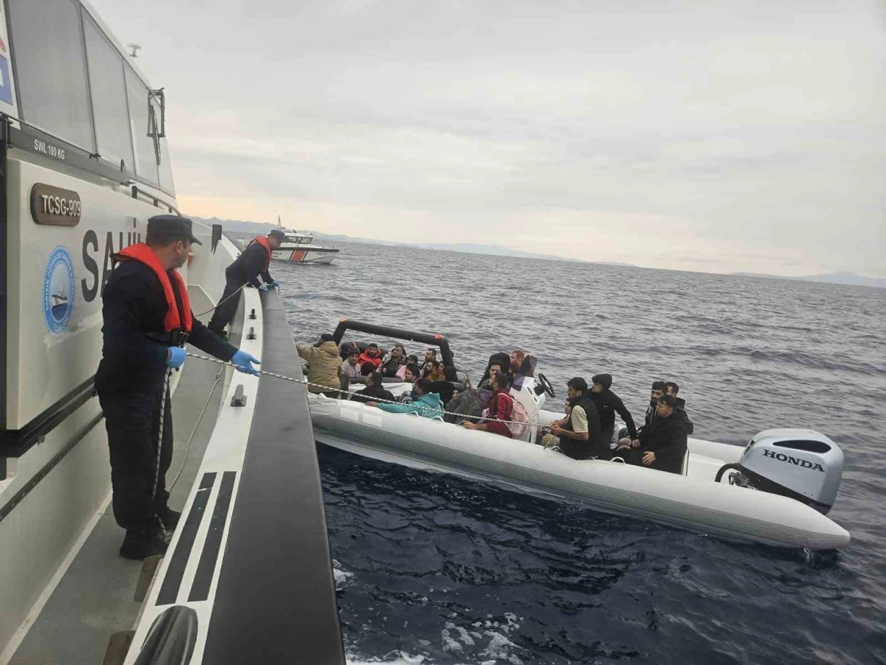 Aydın’ın Didim ilçesi açıklarında Yunanistan tarafından geri itilen 9’u çocuk 36 düzensiz göçmen kurtarıldı. Aydın’ın Didim ve Kuşadası açıklarından lastik bot veya can salları ile Yunanistan’a geçmeye çalışan düzensiz göçmenlere yönelik çalışmalar aralıksız devam ediyor. Edinilen bilgiye göre sahil güvenlik ekipleri, Didim açıklarında lastik bot ve can salı içerisinde bir grup düzensiz göçmen olduğunu tespit etti. Bölgeye sevk edilen Sahil Güvenlik Botu tarafından Yunanistan unsurlarınca Türk Karasularına geri itilen fiber karinalı lastik bot ve can salı içerisindeki 9’u çocuk toplam 36 düzensiz göçmen kurtarıldı. Kurtarılan 36 düzensiz göçmen gerekli sağlık kontrollerinin ardından Aydın Düzensiz Göçmen Ön Kabul ve Sevk Merkezi’ne (GÖKSEM) teslim edildi.