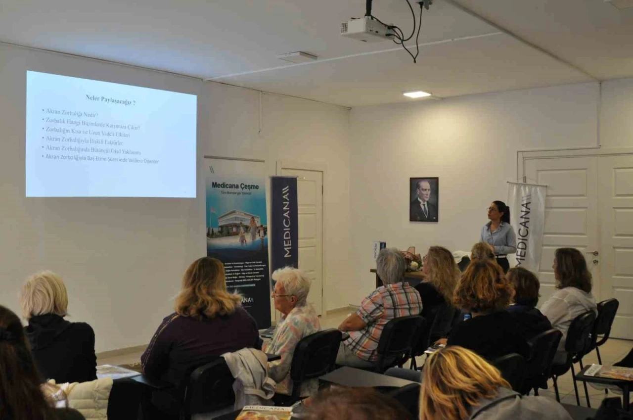 Medicana sağlık grubu psikoloji bölümü’nden klinik psikolog burçin deniz, çeşme’de ebeveynlerle bir araya gelerek akran zorbalığına karşı dikkat edilmesi gereken noktalar hakkında bilgi verdi.