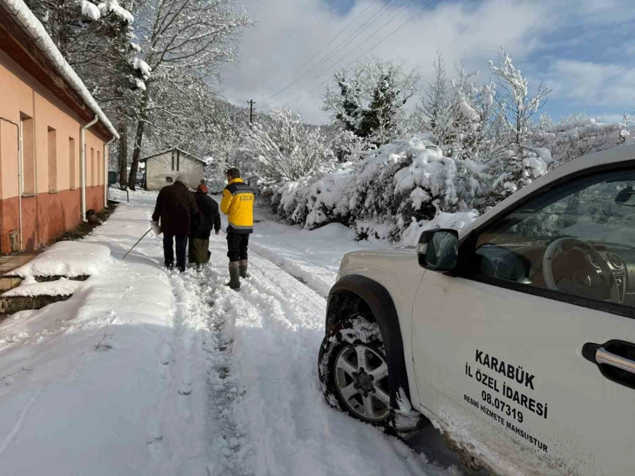 Karabük’te kar yağışının ardından il özel idaresi ekipleri, kapanan köy yollarını açarak ambulans ve sağlık hizmetlerinin vatandaşlara kesintisiz ulaşmasını sağladı.