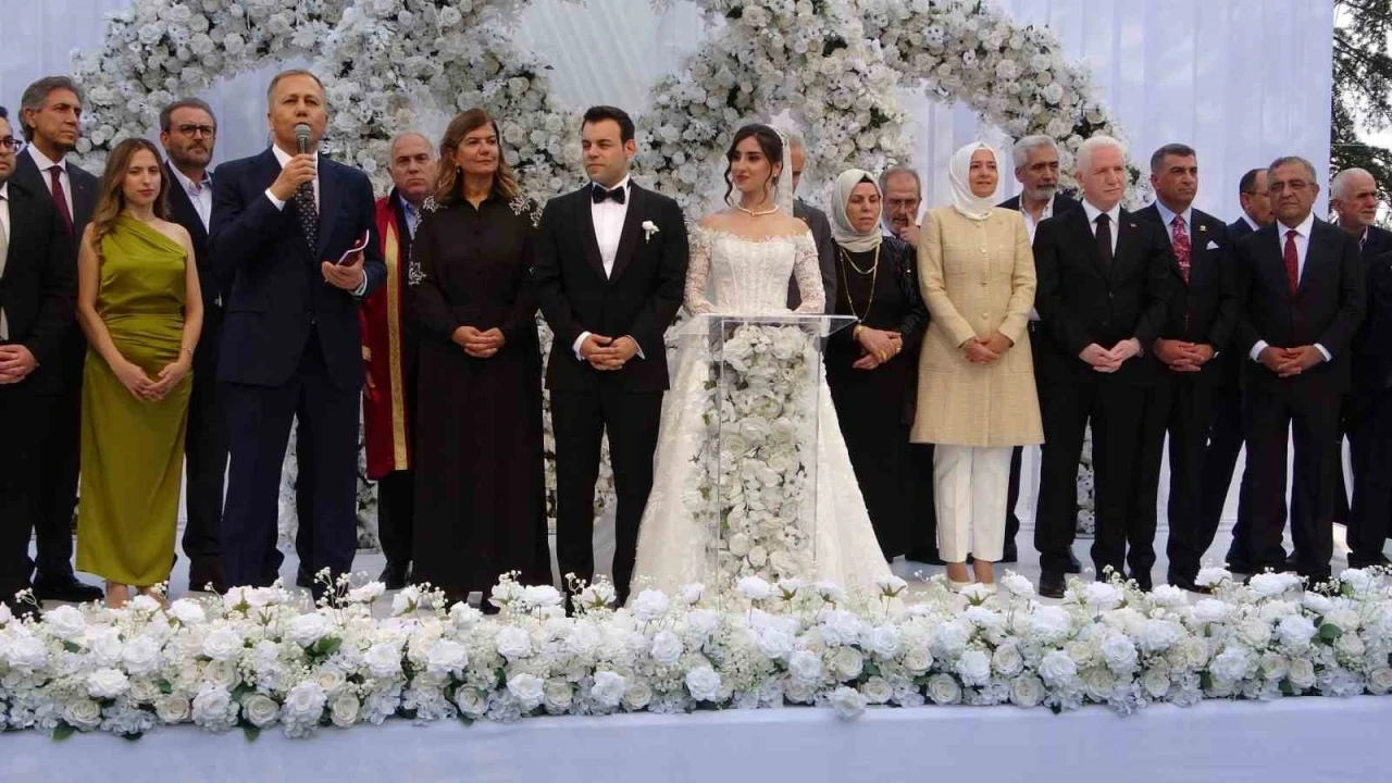 Nikah sırasında söz alan İçişleri Bakanı Ali Yerlikaya, evlilik cüzdanını Berna Gökmen’e teslim ederken genç çifte Cumhurbaşkanı Recep Tayyip Erdoğan’ın ailelere yönelik temennisini hatırlatarak, "Cumhurbaşkanımızın dediği gibi en az beş çocuk bekliyoruz" ifadelerini kullandı.