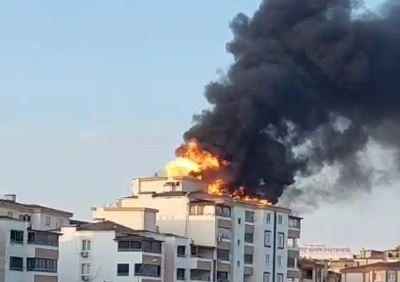 Konya’da 3 katlı binanın çatısında yangın paniği